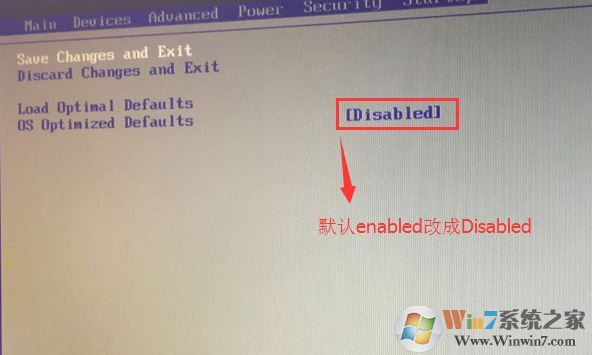 2、转到Exit,把OS Optimized Defaults设置为Disabled;