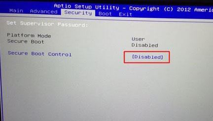 1、重启笔记本按F2进入BIOS设置,在Security下把Secure Boot Control设置为Disabled,如下图所示;