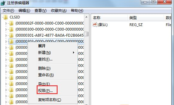 1、右键点击你要删除的注册表项目,然后选择“权限”;