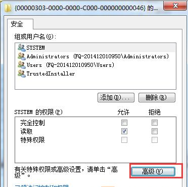 2、弹出弘限设置窗口后再点击“高级”按钮;