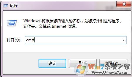 1、<Win+R>快捷键进入运行对话框,在对话框输入cmd,进入命令提示符工具,如图: