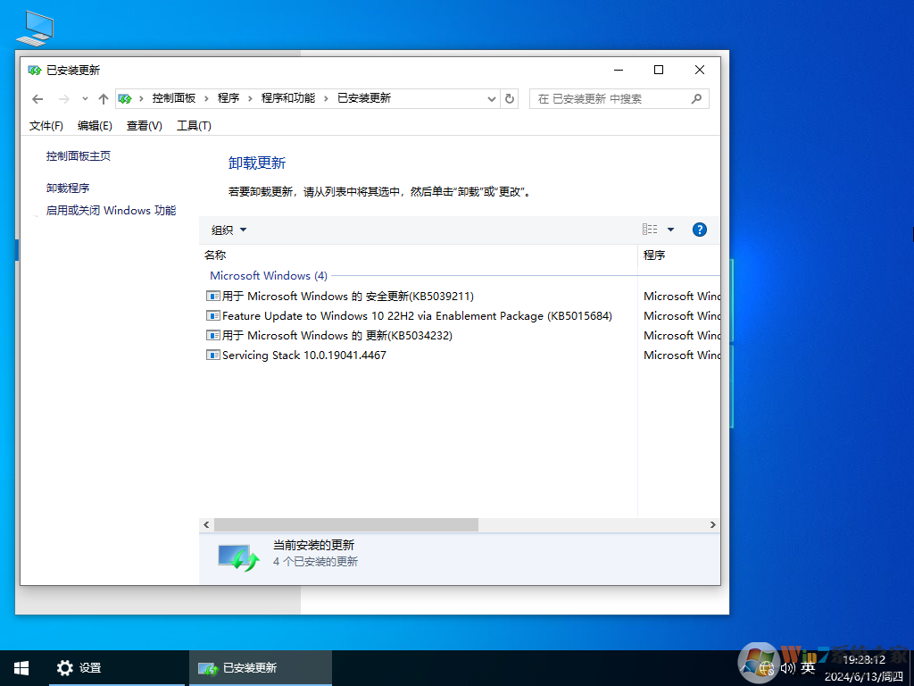 2. 系统已安装Feature Update to Windows 10 22H2 via Enablement Package (KB5015684)。