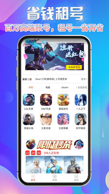 省钱租号app是专业游戏帐号出租租用平台,就是这么随意