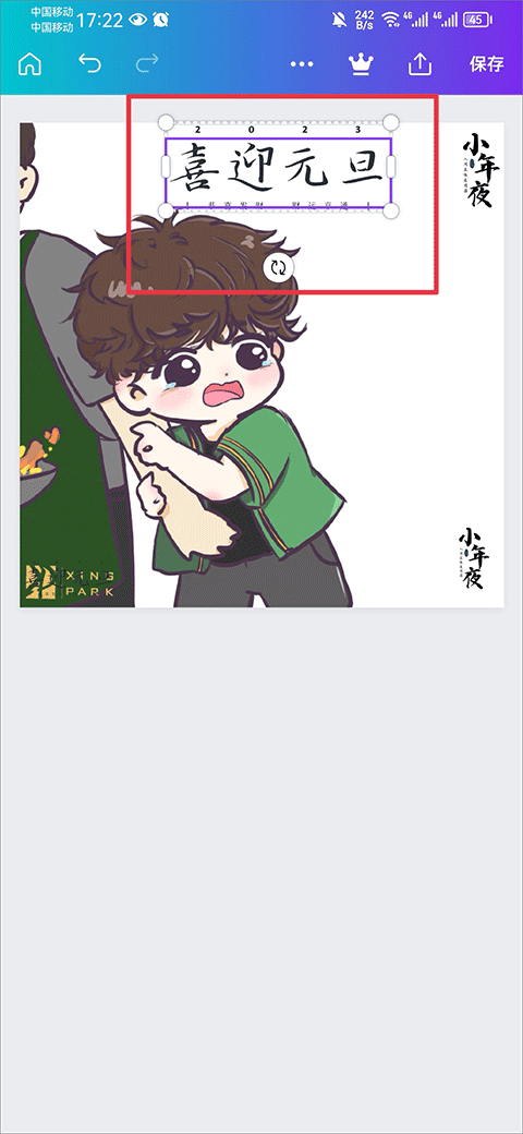 3、点击后就可以在图片中看到该文字了,然后点击文字可以调节大小和移动位置