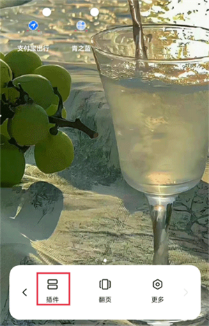 1、打开软件后,直接在手机桌面上进行双指的捏合,就能够6弹出各个功能的选择,去找到“插件”。