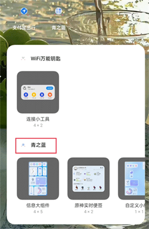 2、开始向下滑动去找到“青之蓝”的各个小组件。