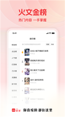2、海量小说资源:火文小说app拥有大量最新.最热门的小说资源,涵盖了各种类型和题材,包括言情.玄幻.都市.青春.悬疑等,满足用户的多样化阅读需求。