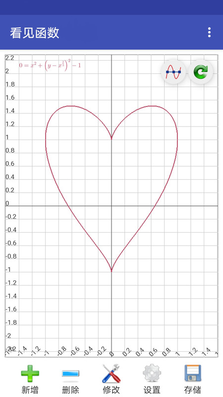 看见函数APP是一个非常专业的数学函数图形绘制软件,数学函数图形绘制软件能为用户提供丰富的数学函数图形绘制工具,能帮助用户进行更好更精准的函数表达。该软件支持用户绘制平面曲线,不管是普通的y=f(x)形式的方程、极坐标方程还是参数方程和f(x,y)=0等各种形式的方程都能轻松且完美支持,除此之外,该软件还能为用户提供绘制空间曲线和曲面等功能和服务!更多精彩等您下载体验!