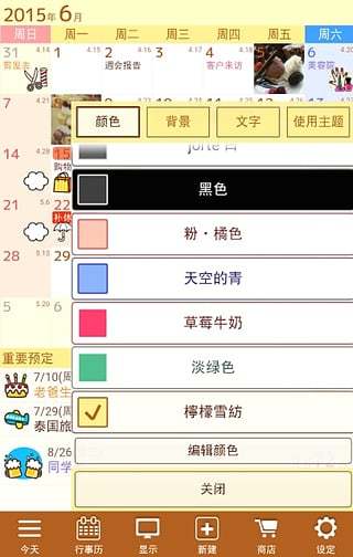 3、根据你选择的风格,你可以自行设定周的起始日,从网路取得国定假日资讯,并依您自己的需要自由调整。