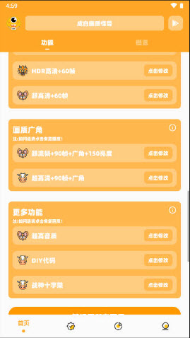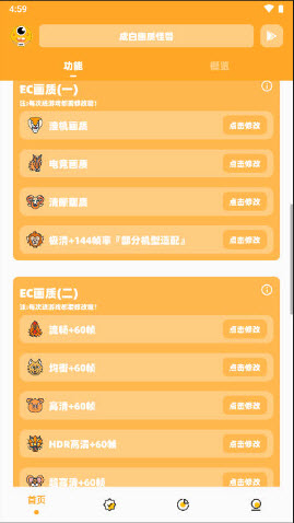 1、适用于所有机型,一键修改画质;突破手机设备上限,达到最高画面。