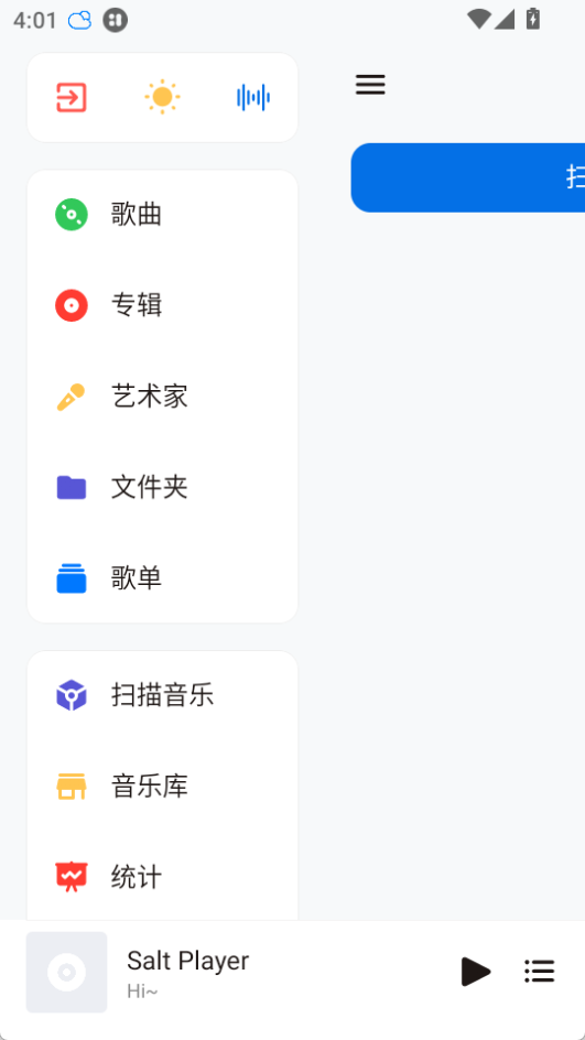 1、打开椒盐音乐App,点击扫描音乐