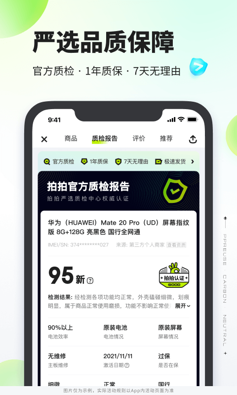 70项官方检测、24小时发货、30天免费质保,解除您的一切后顾之忧;验机流程实时监控、专业