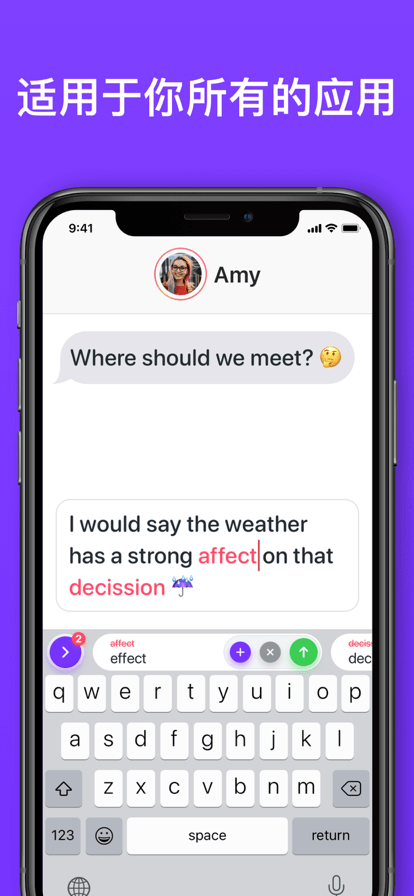 在任何应用程序中使用 Typeright 键盘可获得即时反馈和无错输入。