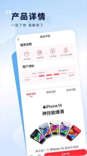 用户界面简洁直观,操作流程清晰明了,从挑选商品、下单租赁,到支付和售后支持,每一步都力求顺畅无阻,让租赁体验如同呼吸般自然。