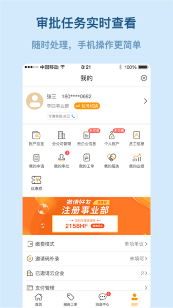 1、用户不管在里面去查看员工信息,个人账户,云企业信息等等来说都可以。