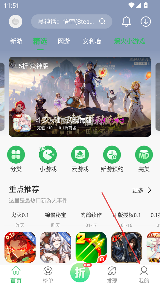 1、打开百分网游戏盒子,点击右下角我的