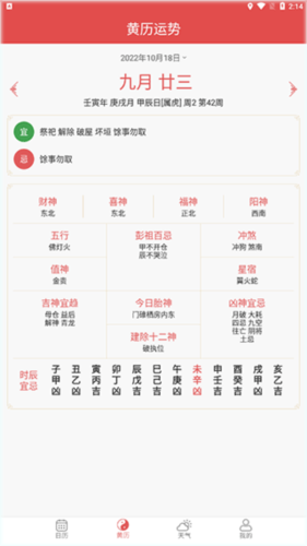 4、黄历万年历:提供农历及节日查询,还有每日宜忌、每日运势、时辰吉凶等,助您趋吉避凶,好天气,好运气。