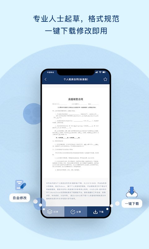 专业模板,随时更新,app中建立了非常庞大的数据模式,让所有用户都可以及时来进行更新和使用,可以更好的进行让用户挑选不同的协议模板。