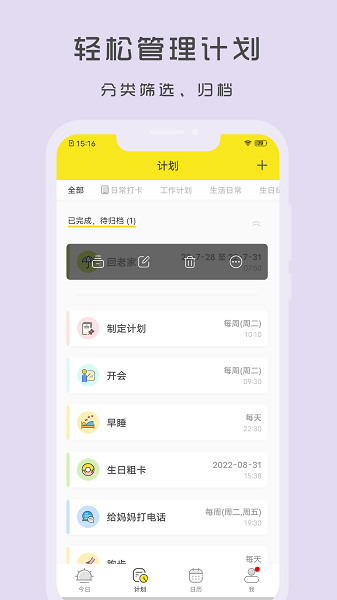 * 可以在日历页回顾以往的日子,也可以看看未来要做的事