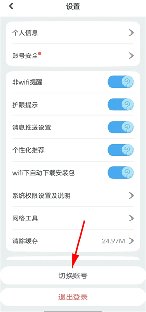 2.进入设置界面,在众多选项中找到 “切换账号”,点击进入相关操作页面。