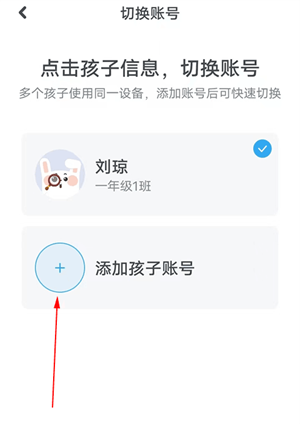 3.在切换账号页面,点击 “添加另外一个孩子的账号”,按提示完成添加。