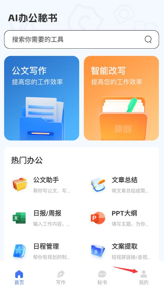 AI办公秘书app是一款手机掌上全能办公服务软件,功能强大齐全,ai智能创作功能可以满足你的所有使用需求,实现ai公文写作,智能改写,内容写作,聊天问答等,使用方便快捷,操作简单,覆盖了超多工作所需,海量创作模板等你来使用,快来试试吧。
