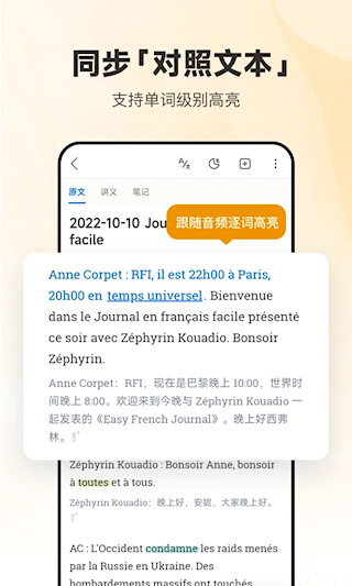 每日法语听力APP是一个专业的法语学习应用,拥有丰富的法语听力资源,涵盖基础课程到专业领域内容,提供各式各样的听力训练素材,提供了文本对照功能,实现听力材料与文字的双向验证,智能跟读功能会自动生成语音分析报告,帮助了解发音问题,及时纠正,高效学习。还提供了定时复习功能基于记忆曲线算法,提升记忆效率和时长。