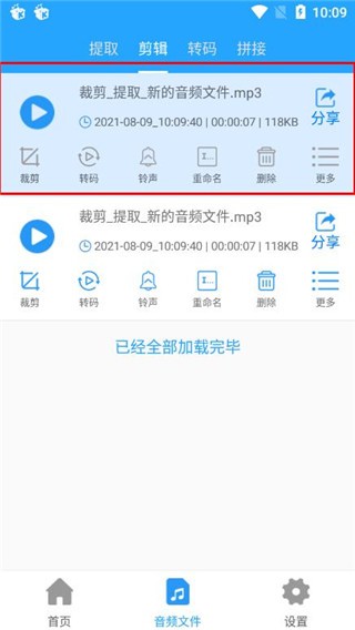 5、查看和管理所有提取或剪辑的音频,了解音频信息。