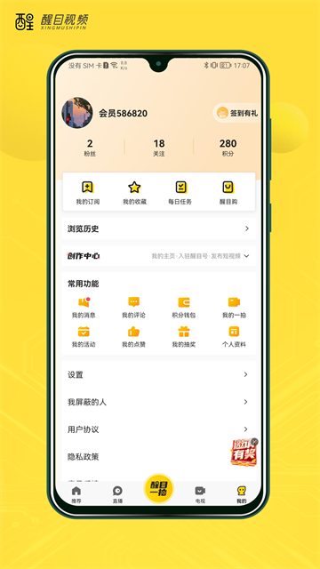 1、安装好醒目视频APP后打开,这时候需要点击"同意用户协议和隐私协议"才能进入APP