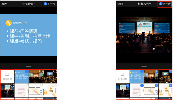 UMU不仅支持从手机相册中选择图片做为讲稿,还提供了手机编辑窗口,可以使用手机直接制作简洁的文字讲稿。