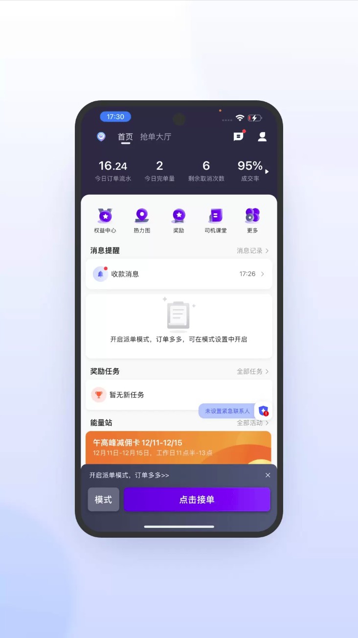 2.早晚高峰接单响应快,点击确认就能直接导航,基本不用等待。