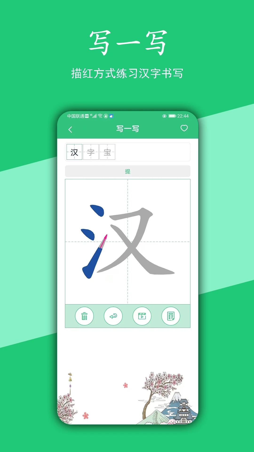 4、汉字临摹功能借助描红方式,让孩子在实践操作中反复练习,强化汉字书写能力,保证每个汉字书写达标。