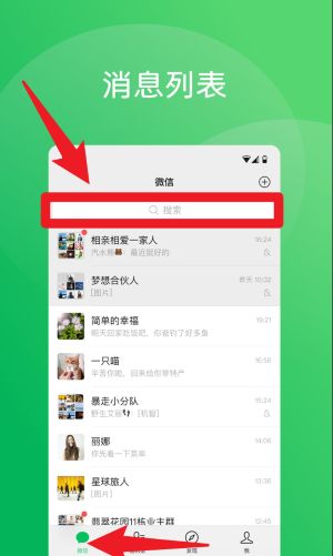2、进入消息列表页后,可通过顶部搜索框快速查找联系人或聊天记录。