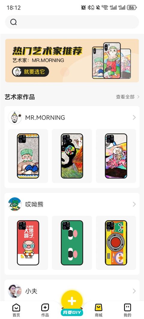 6、点击进入艺术家专区,即可浏览其全部作品案例,了解设计师风格,为定制提供参考。