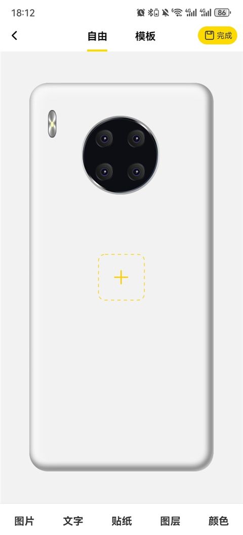 3、选择完成后点击“开始设计”进入编辑界面,点击页面中的“+”号图标,即可从手机相册中选择图片添加到手机壳的指定区域。