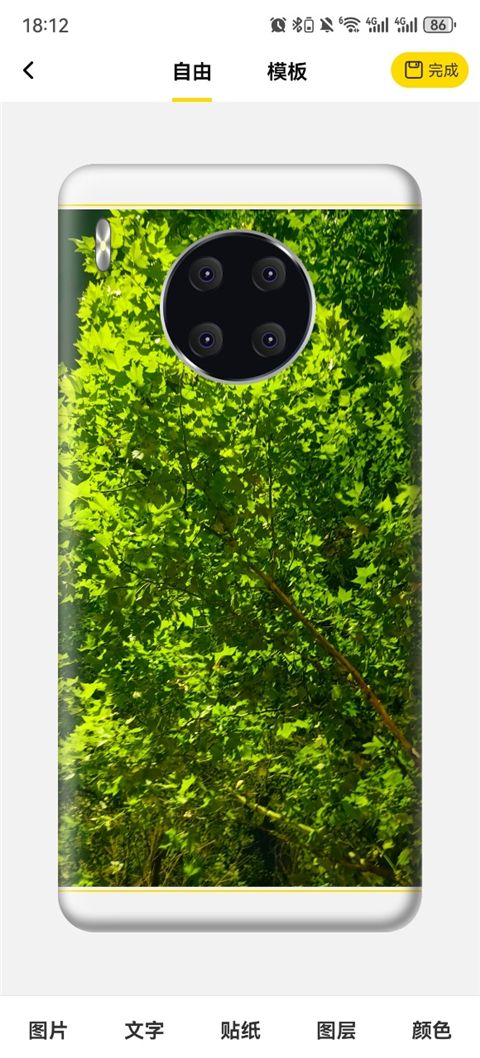 4、添加图片后可以自由调整图片的位置和大小。如图所示是小编制作的效果图,用户还可以根据喜好添加文字内容、表情包、贴纸等元素,丰富手机壳的视觉效果。