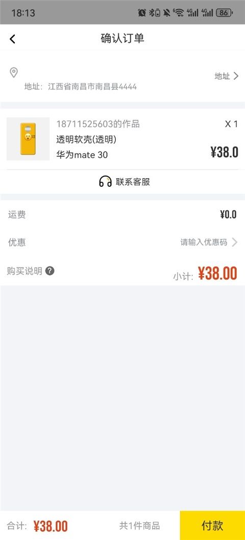 7、进入订单确认页面,填写收货地址,选择支付方式并完成付款,即可等待定制的手机壳发货送达。