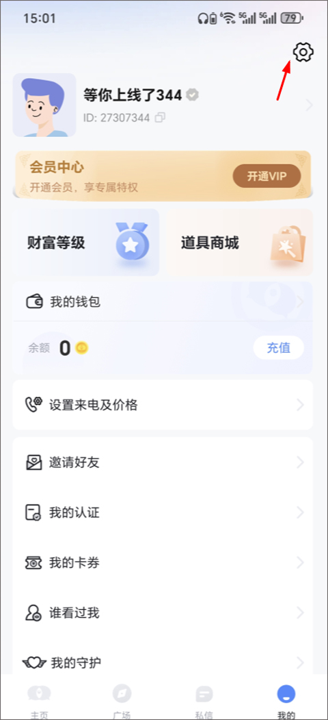2、在个人中心页面,点击右上角的齿轮图标,进入设置界面。