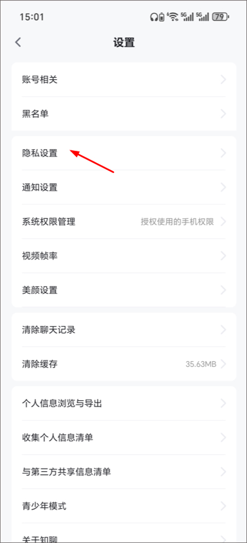 3、在设置页面中,找到并点击“隐私设置”选项。