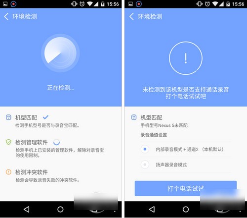虽然说通话录音在某些国家是非法的,但在中国还是有很多朋友有这个需求的。录音宝带有通话录音功能,经过检测机型匹配和软件冲突后,就可以开启。不过,由于通话录音在美国是非法的,安卓并没有提供原生的通话录音API,所以录音宝的通话录音功能并不能保证在所有的安卓机型中都能够正常工作。