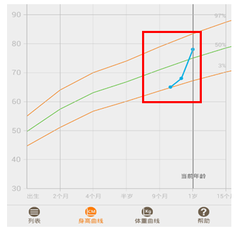 点击下方的身高曲线或者体重曲线,就可以直观地看到你家的小家伙在同龄孩子中表现是属于领先水平还是垫底啦。
