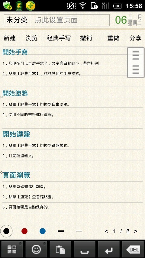 安卓手机上非常给力的一个随手记事本,喜欢用键盘记事的朋友,请设置键盘为缺省模式。喜欢用手写记事的朋友,请设置手写为缺省模式。