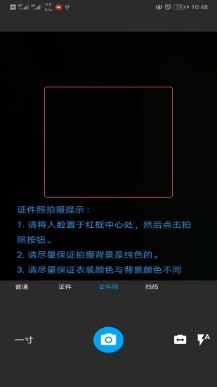 三、证件照生成:拍一下生成各种尺寸和类型的证件照、一键换背景、照片美颜。