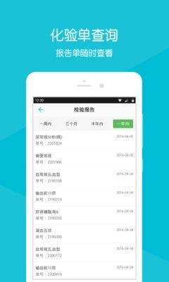 2、检验报告:精准查询一年内的各类化验报告详情,时间记录准确无误;