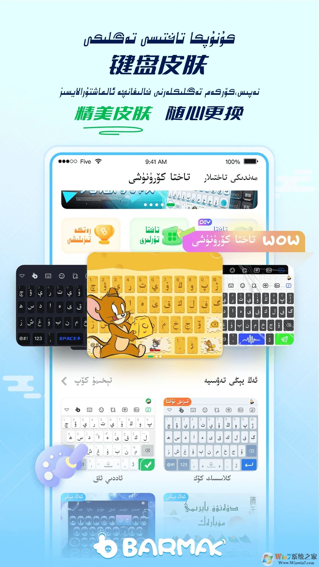 BARMAK输入法是一款非常强大的手机输入法软件,支持维语、汉语、英语的多语言输入法,更加科学的帮助你进行快速输入,软件提供了大量的皮肤,还有智能联想功能,为新疆和所有使用维吾尔语用户提供更舒适便捷的打字体验!