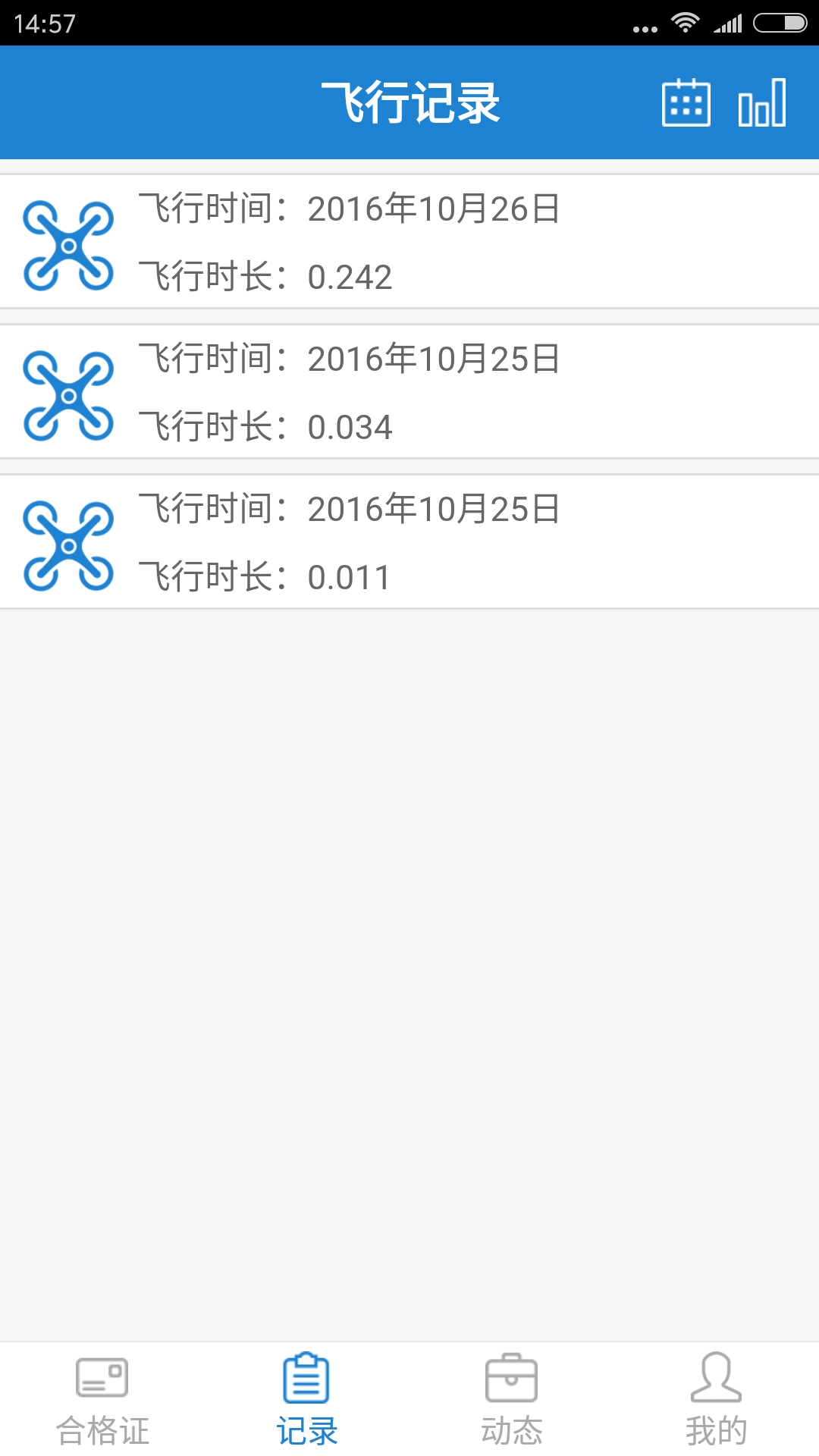 2.可以查看个人电子飞行经历记录时间