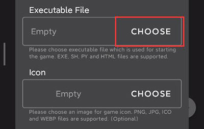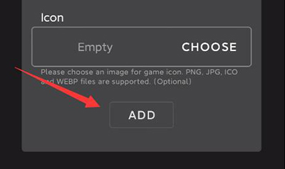 6、第四个是游戏图标,同样不填也行,直接点击最下面的“ADD”;