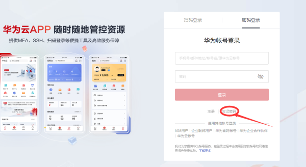 1、先到官网的华为云服务登录入口:https://auth.huaweicloud.com/authui/login.html#/login