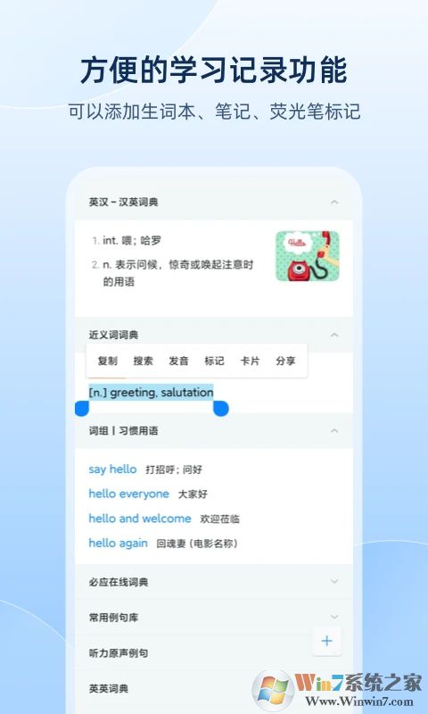 5. 翻译功能:支持英汉互译、英英释义、生词翻译等功能,可以满足不同学习需求。