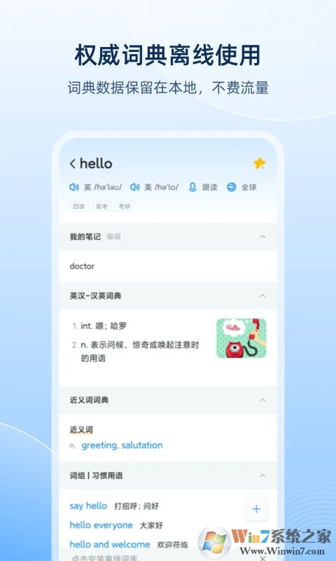7. 离线功能:可以将词库下载到本地,即使没有网络也可以查找单词、学习等。
